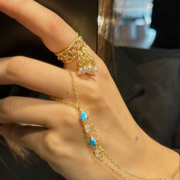 A ring that carries the spirit of ancient grace. Golden lattice cradles a cascade of pearls, each one said to hold a ka — the soul’s eternal light. It shimmers with quiet divinity, where beauty is not just worn, but felt.