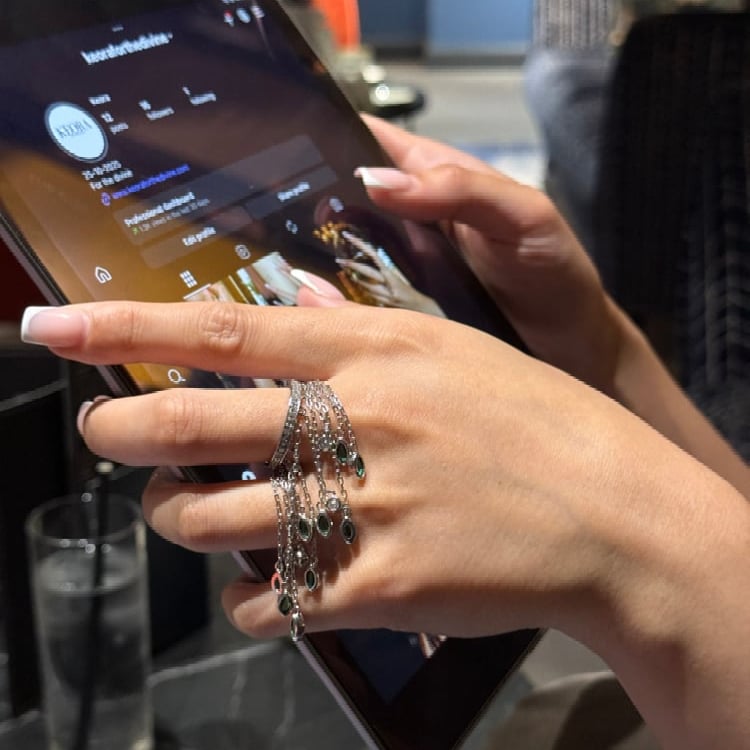 Inspired by the eternal flow of the Nile, this ring drapes in silver chains that shimmer like rippling waters beneath the sun. Green stones dance at every turn — symbols of life, renewal, and divine balance. Nile Cascade carries the rhythm of Egypt’s heart, where movement meets immortality.
