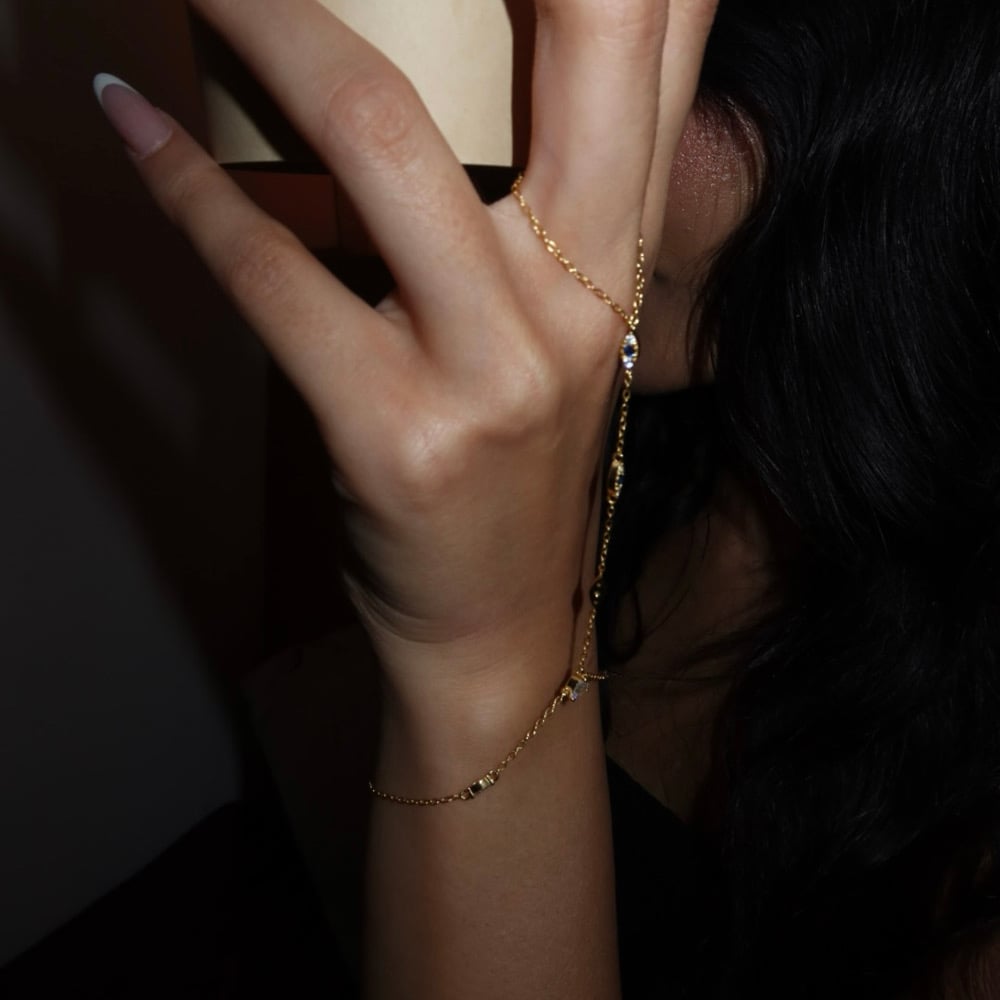 A talisman of elegance and strength. The Oculus Guard Hand Chain is adorned with three evil eyes, each a timeless symbol of protection and divine watchfulness. Minimal in design yet rich in meaning, it drapes across the hand with effortless grace, guarding its wearer against negativity while radiating refined beauty.